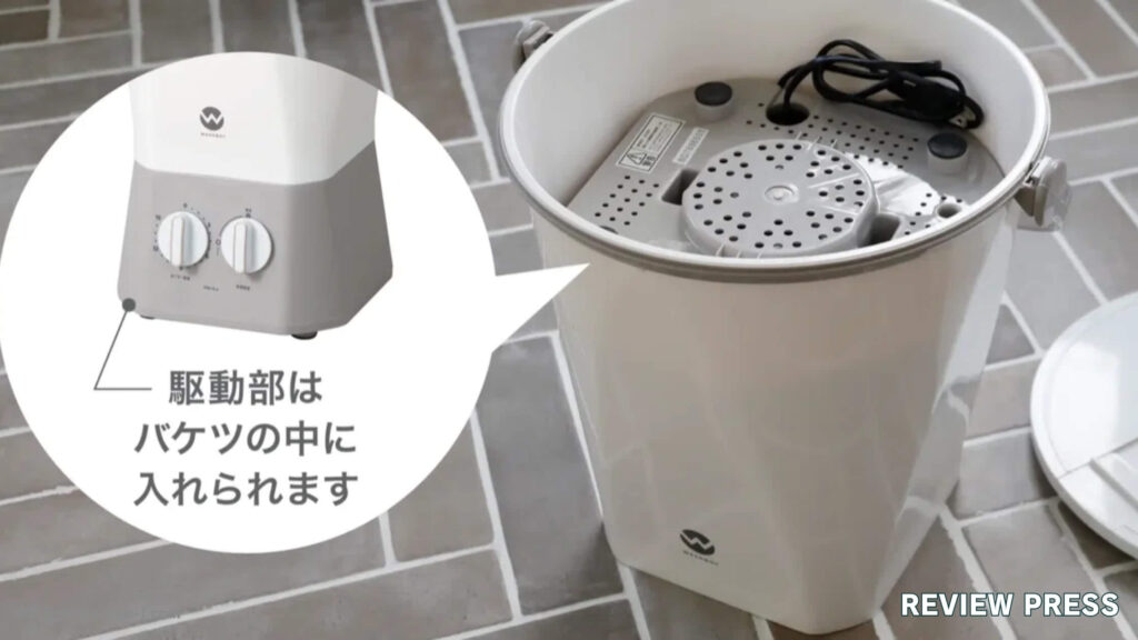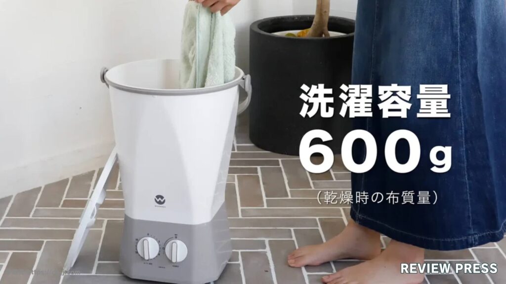 バケツのように持ち運べる軽さ(約5.3kg)も魅力でした。音も意外に静かで、洗濯中の騒音は約60dB前後。深夜の使用でも特に気を遣わずに済みました。